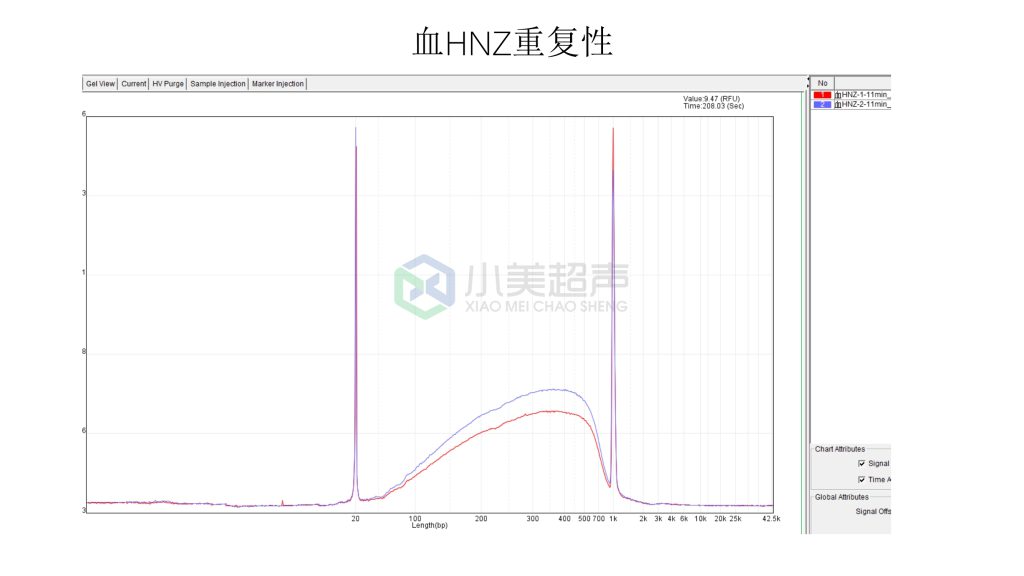 在小美打斷儀上設(shè)置三個(gè)打斷時(shí)間梯度:20min、15min、10min,打斷后的樣本通過(guò)Qsep質(zhì)控片段分布,最后確定打斷時(shí)間10min比較合適。
